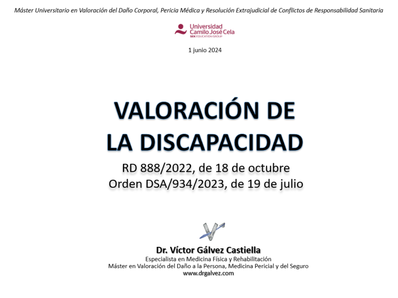 Profesor Máster Universitario en Valoración del Daño Corporal, Pericia Médica y Resolución Extrajudicial de Conflictos de Responsabilidad Sanitaria - Madrid 2024.